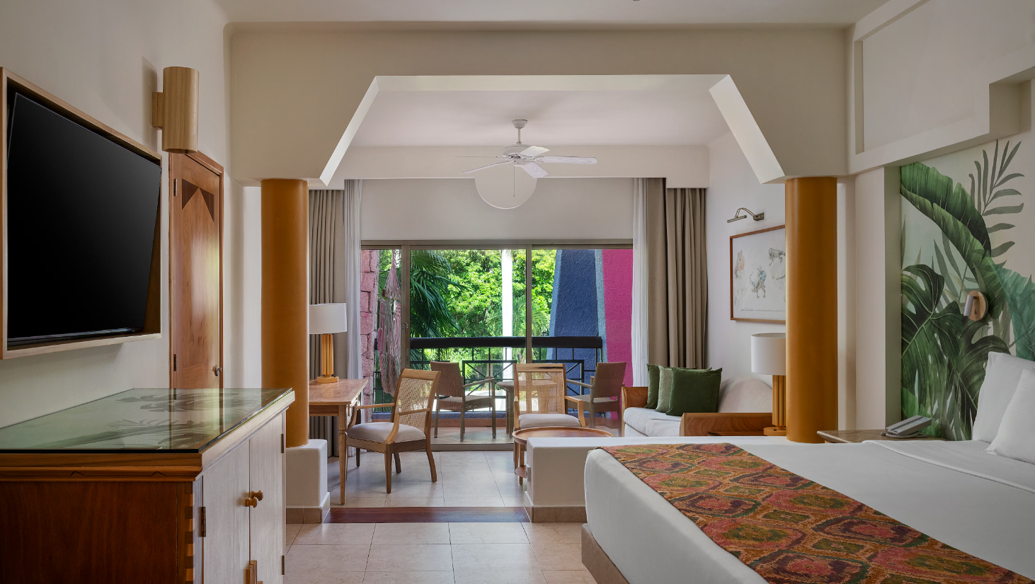 In the Junior Suite, you’ll find everything you need to have an unforgettable vacation in Mexico, from a very spacious room to a minibar restocked daily and turndown service. Pack your day full of fun with the activities your hotel has in store for you, then cap it off by unwinding on your private balcony while admiring the garden views.